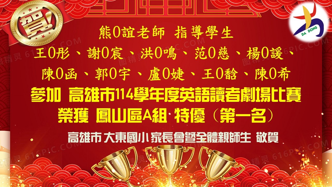 114學年度高雄市英語讀者劇場競賽榮獲特優